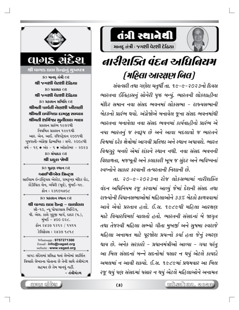 વાગડ સંદેશ: ઓકટોબર ૨૦૨૩