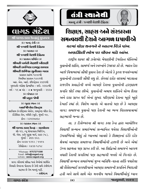 Vagad Sandesh: January 2024
