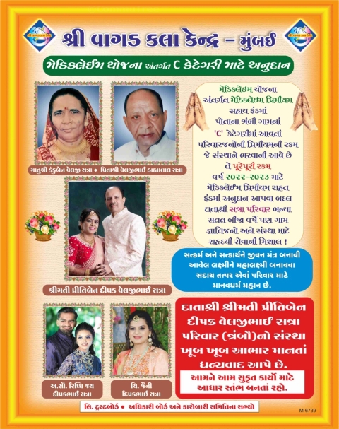 માતુશ્રી કંકુબેન વેલજી ડાહ્યાલાલ સત્રા પરિવાર બન્યા સતત બીજા વર્ષે પણ ગામ જ્ઞાતિજનો,