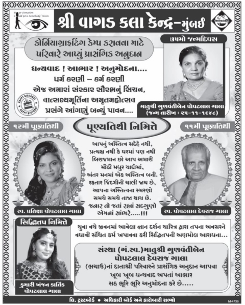 કોર્નિયાગ્રાફટિંગ કેમ્પ કરાવવા માટે પરિવારે આપ્યું પ્રાસંગિક અનુદાન