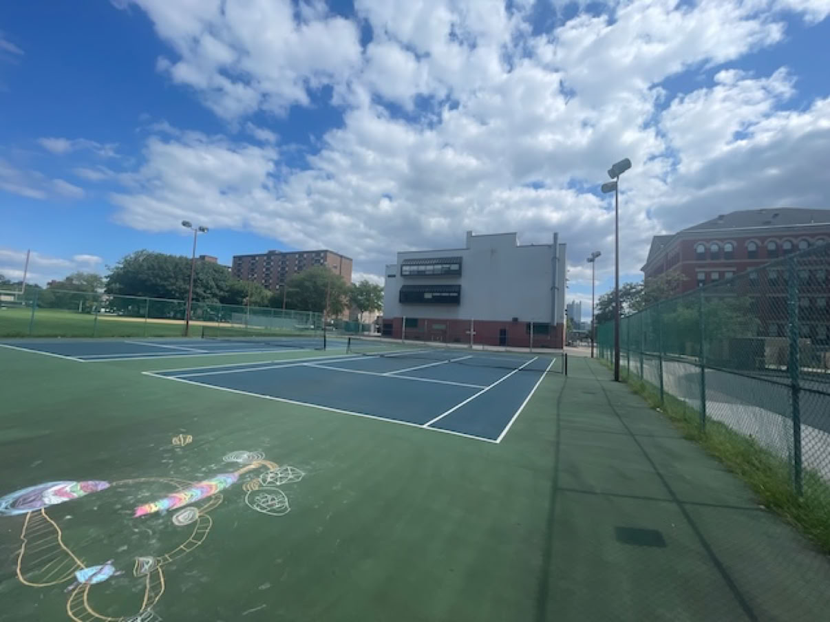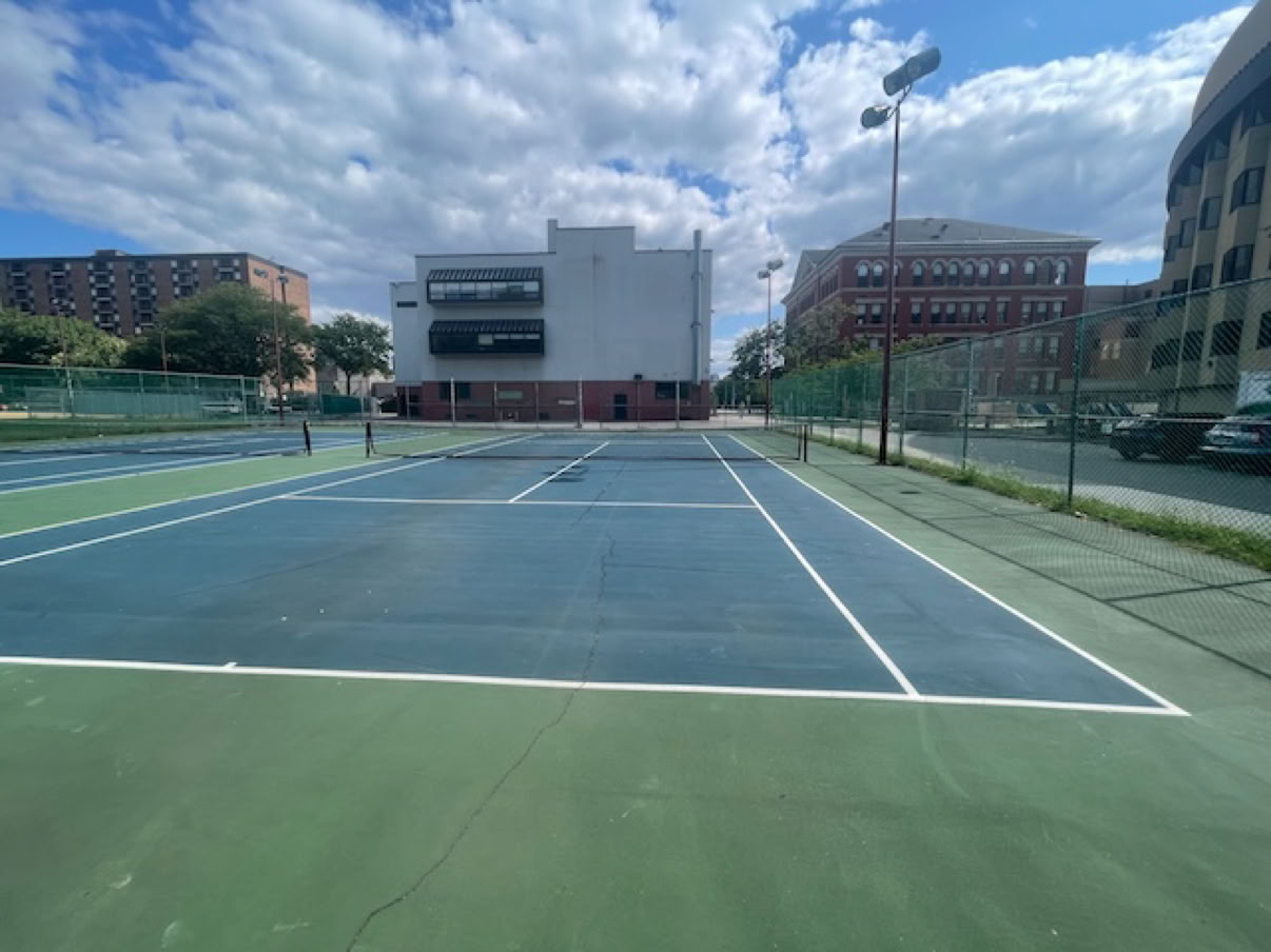 Courts are in a good location but are not in great shape. Playable but just barely. Cracks and just good enough nets. Probably best to park on Arch Street. The directions will take you to Arch Street so park and head to the bend and you’ll see the courts.