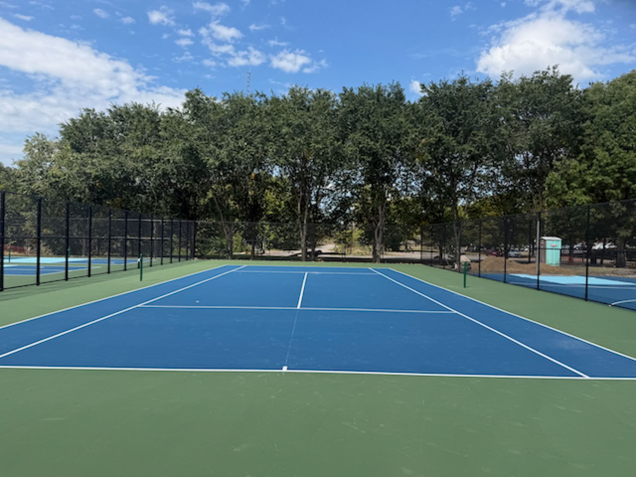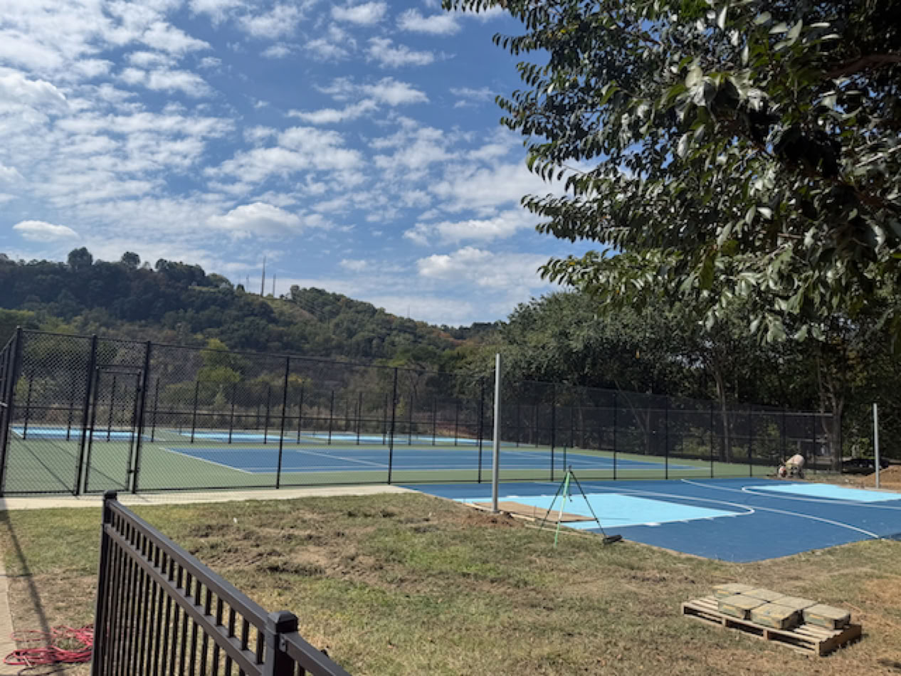 Also known as Riverfront Park. Very disappointing pair of courts. Address is Leetsdale but it is within short walking distance from the Sewickley Bridge. Well located and beautifully set by the river but they are covered in plastic tiles. Plus you can see a dirt gutter between the plastic tiles and the fence so picking up balls with a ball hopper will be a problem.