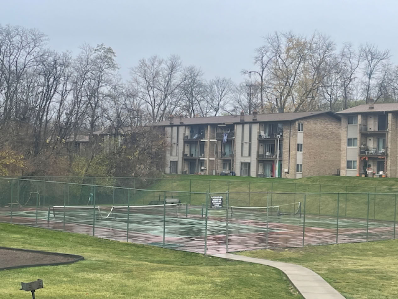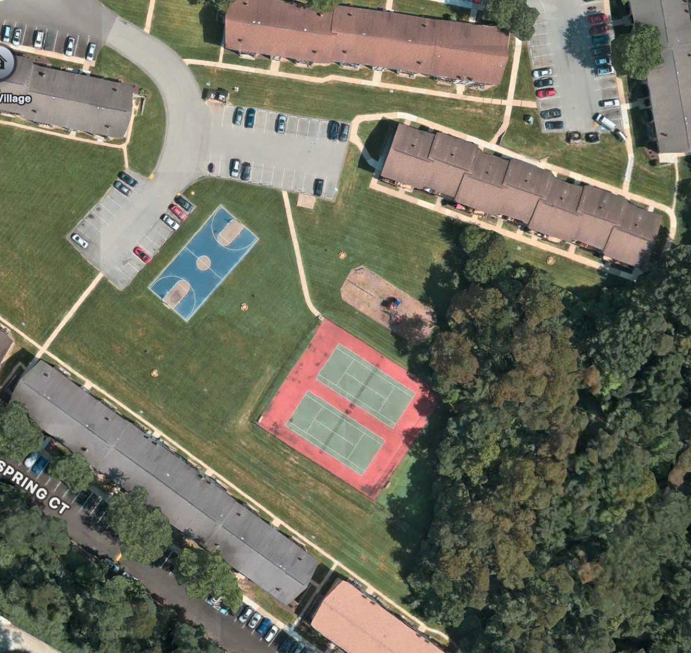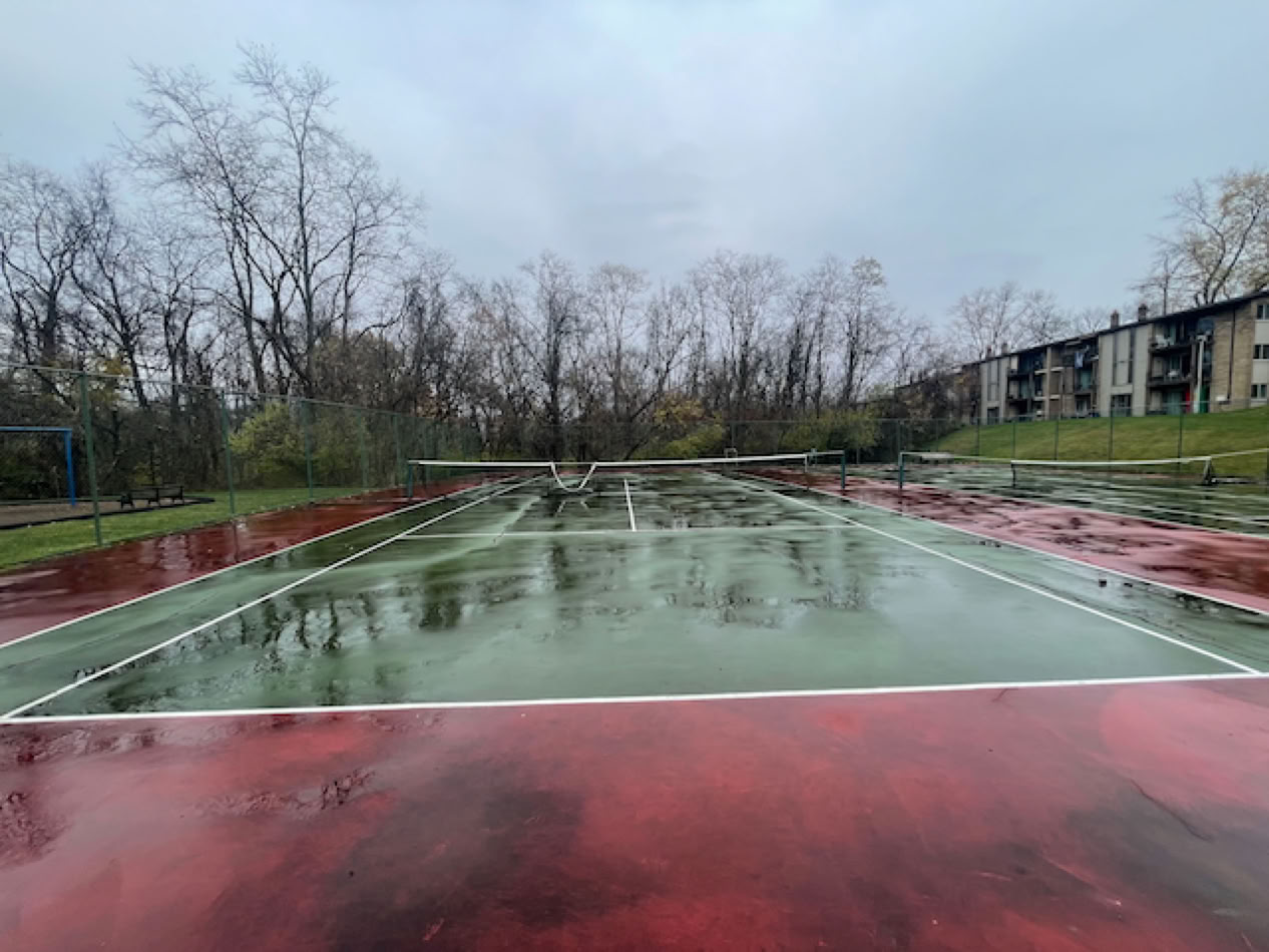 Back in the 70s and 80s, a lot of apartments complexes were built with tennis courts and this is one of them. Totally neglected. Potentially ok for practice if the nets were even fair but they are a mess. Pictures in the rain don't help it much but these courts are so bad it probably doesn't matter.