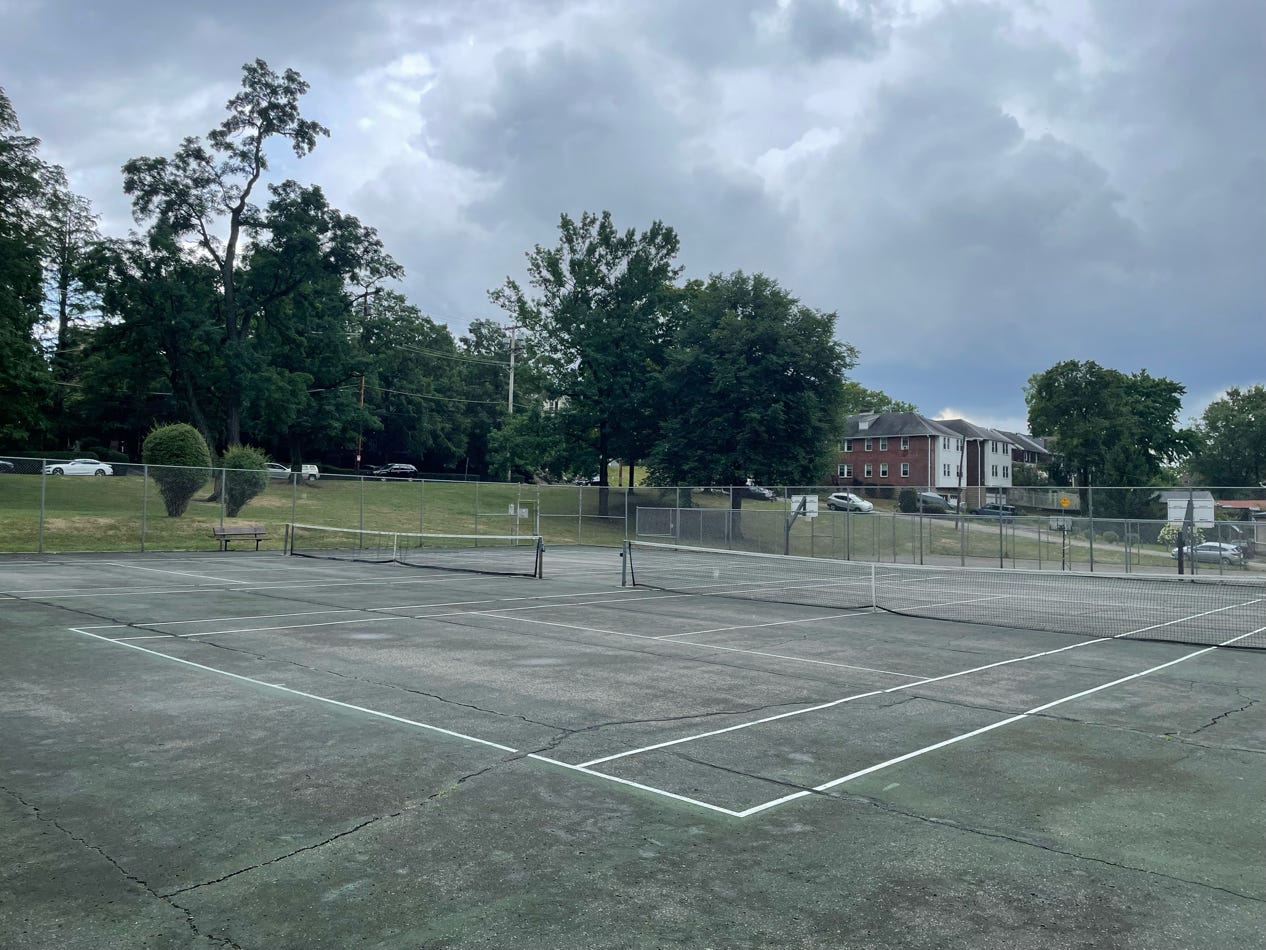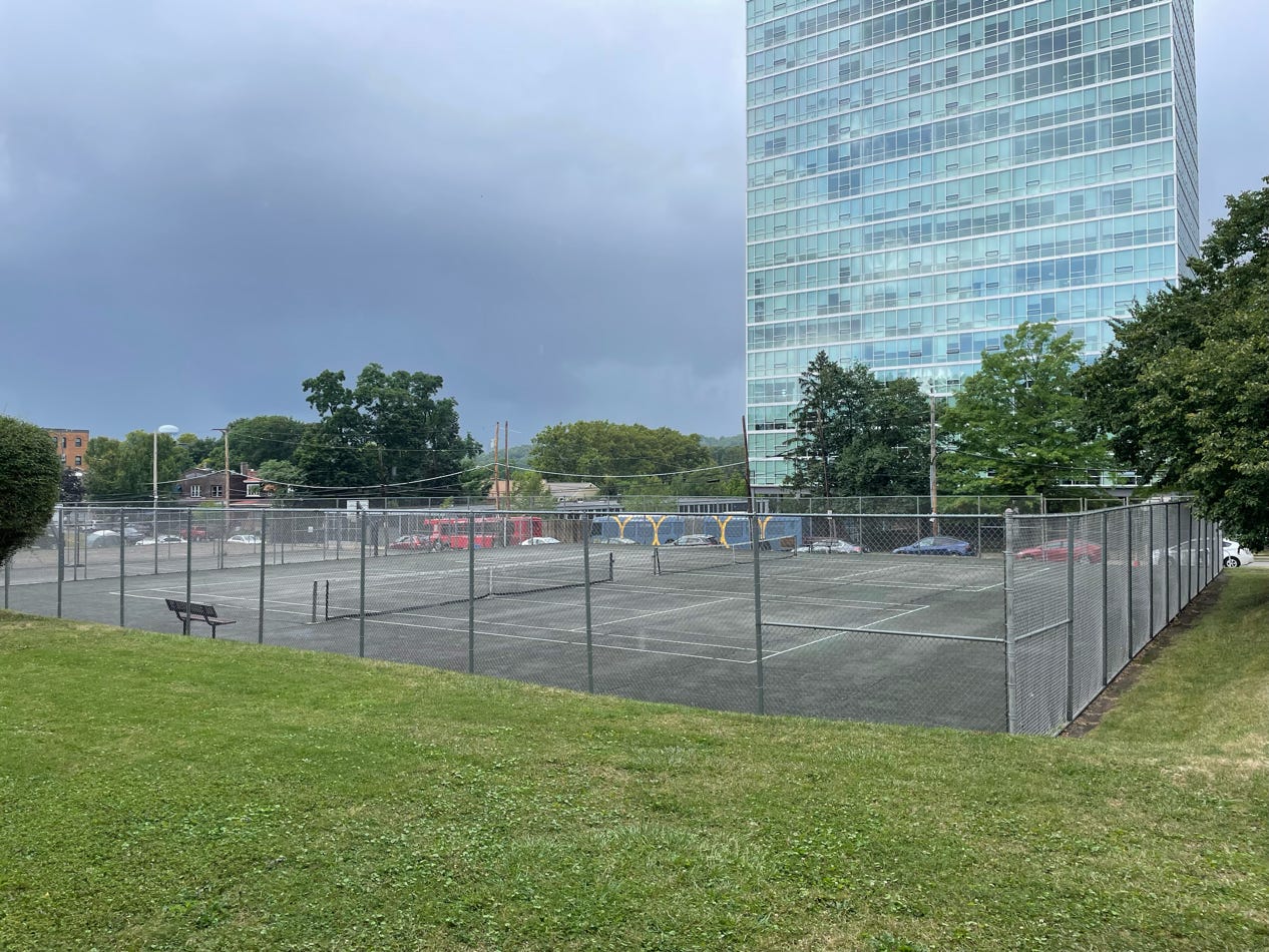 This will do if you are really stuck. It does have a hitting wall which can be nice. Lots of distractions and the court is not in great shape but it is playable.
