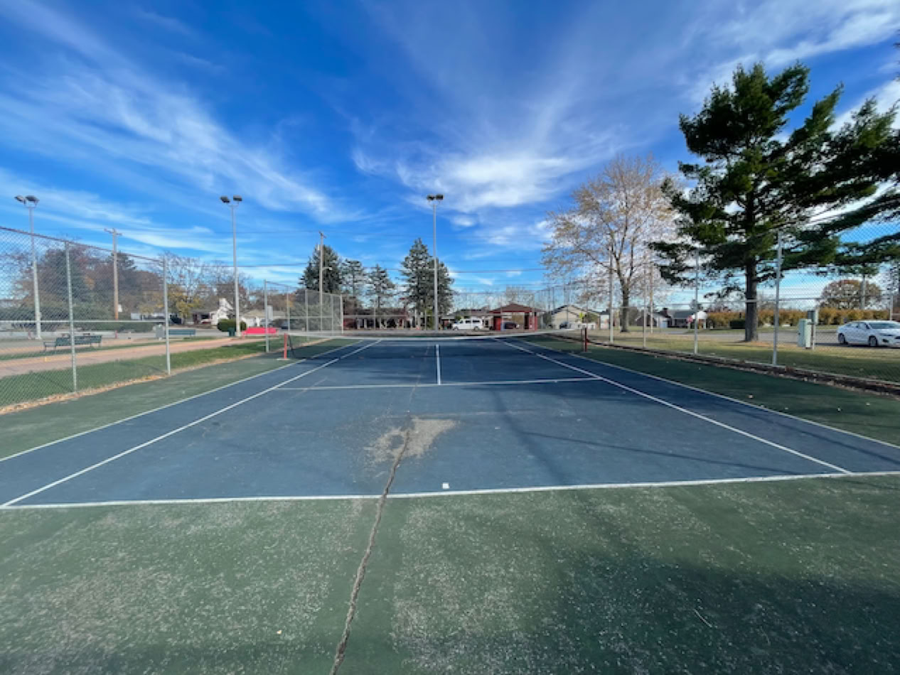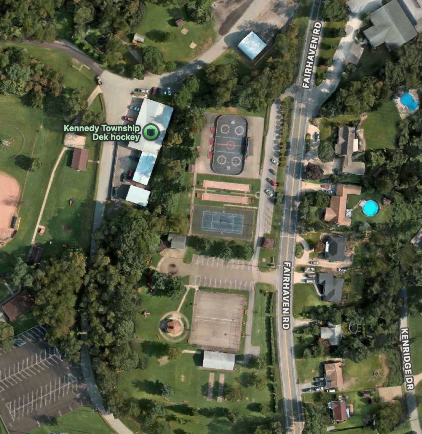 Also known as Kennedy Township Dek hockey. A total wreck of a tennis court. Very nice probably back in its day, it is in desperate need of a redo. Potentially could do some practice on it but the net is sagging low and looks unfixable. One interest feature is right next door is TWO bocce courts. Don't see THAT every day. Also, the sign is a bit humorous seeing that there is a hockey net anchored in the back of one of the backcourts.