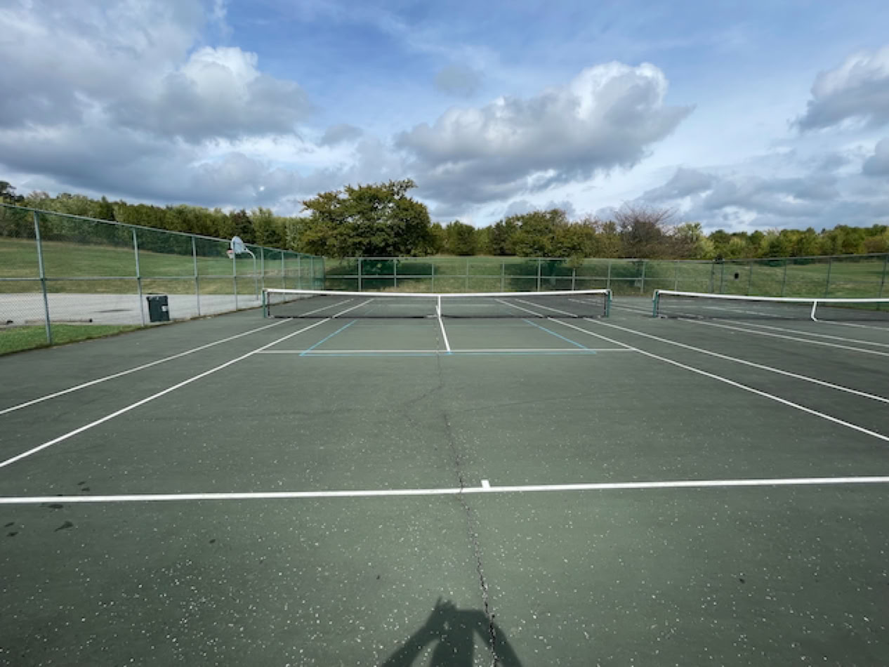 Courts are not great but they are playable. Probably ok for ball machine practice and beginner lessons. Good amenities though which is nice. Also courts have pickleball markings so be aware of that.