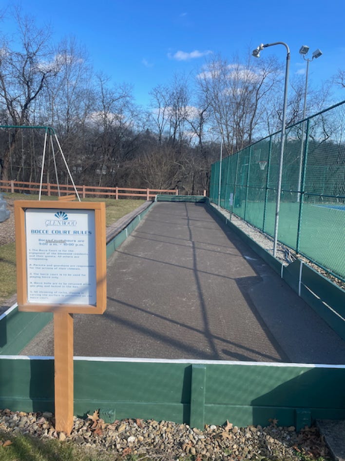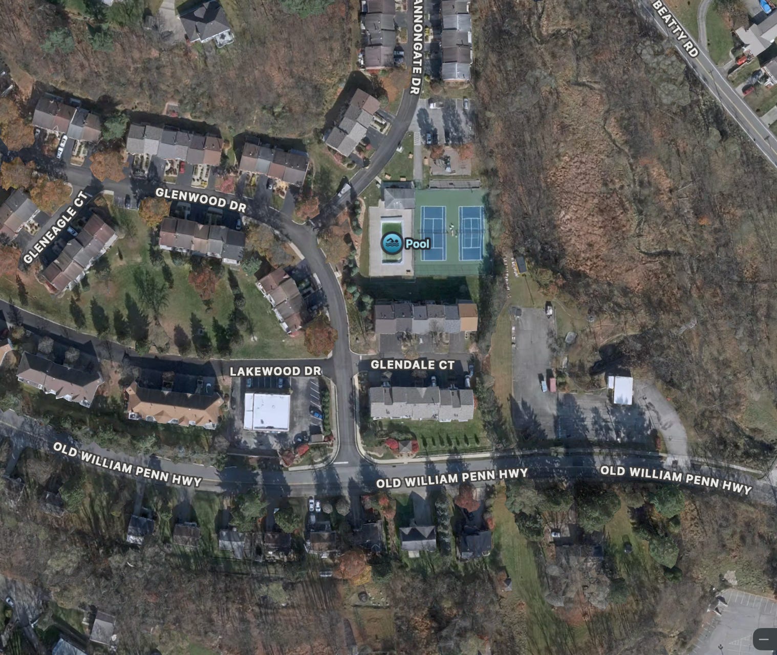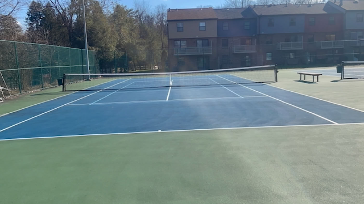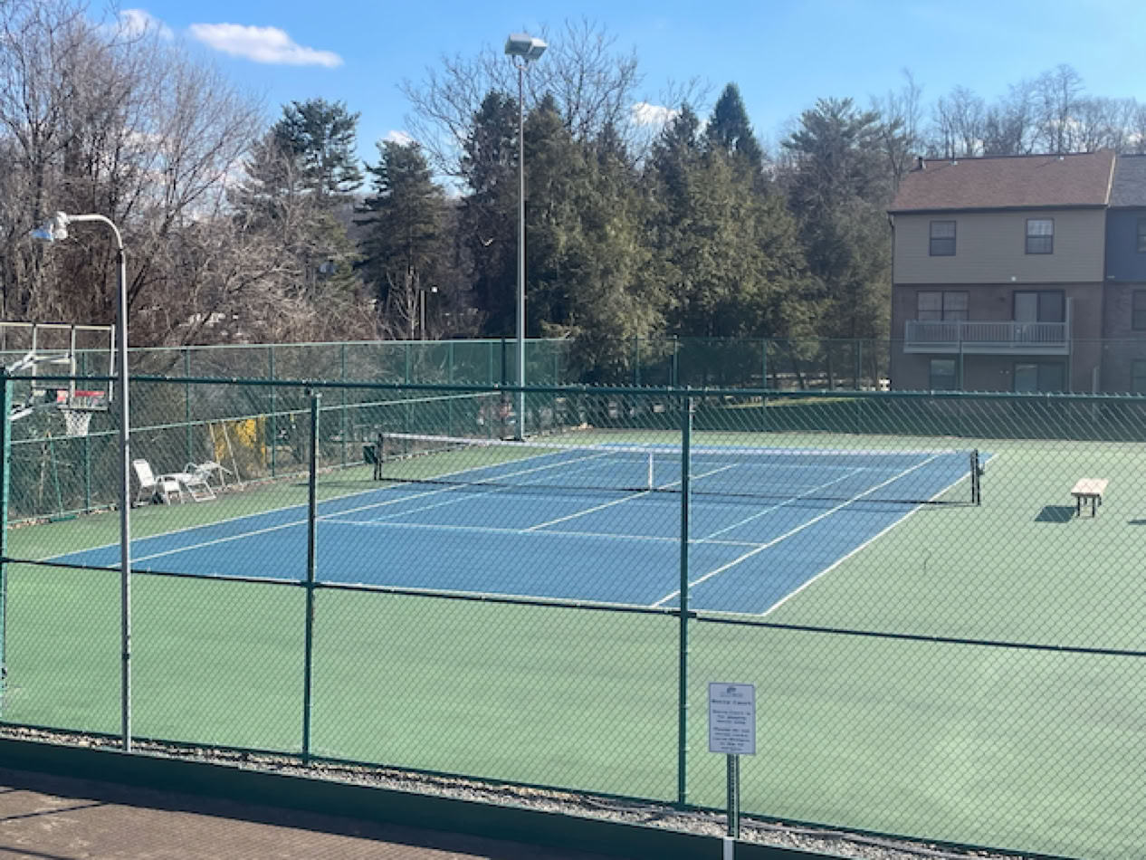 Excellent pair of condo courts in the middle of Monroeville in a great location. Might be the best pair of condo courts in the Pittsburgh area? Could be a hair risky using these if you are not living in the condos but who would know and if it was mid-afternoon in season, probably nobody cares. As a little aside, the condos also have a bocce court. Wonder if anyone uses it?