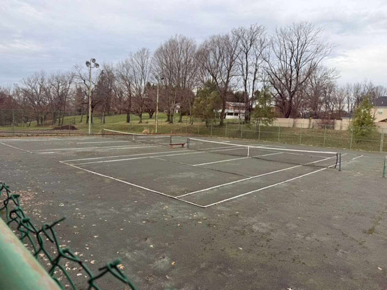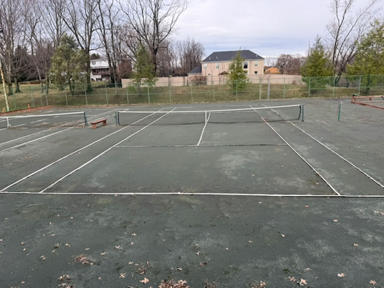 Pictures of the courts taken in the spring before they were ready for the season. Will need to get back here to update these once the season is underway. This is a private club. Has lights but not very well placed.