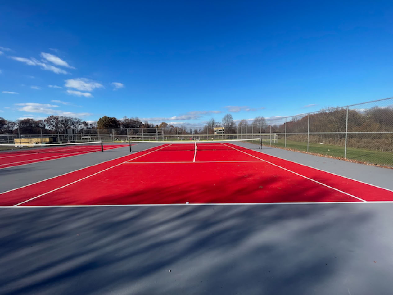 Unexpected pair of nice courts at a middle school in Wexford. Kind of an odd, garish paint color but similar to NASH. This is a school to access to the court during school hours is limited.