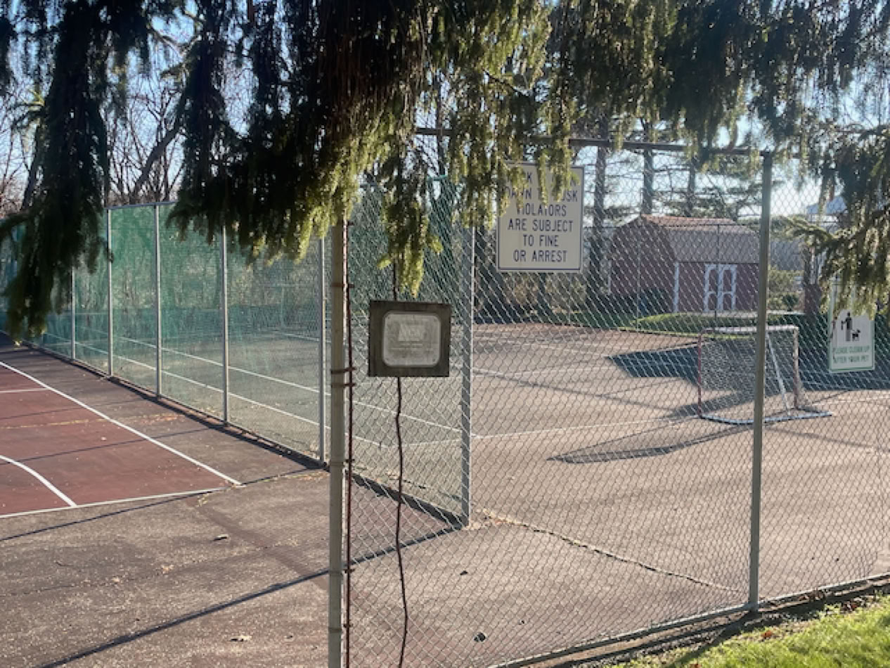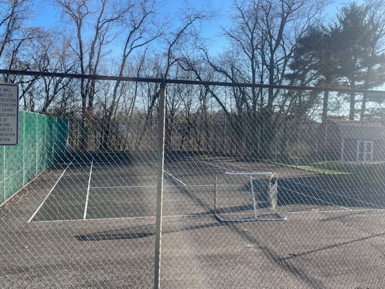 According to the USTA, there is a tennis court in theory but the net posts have been removed and there are hockey nets at each end.