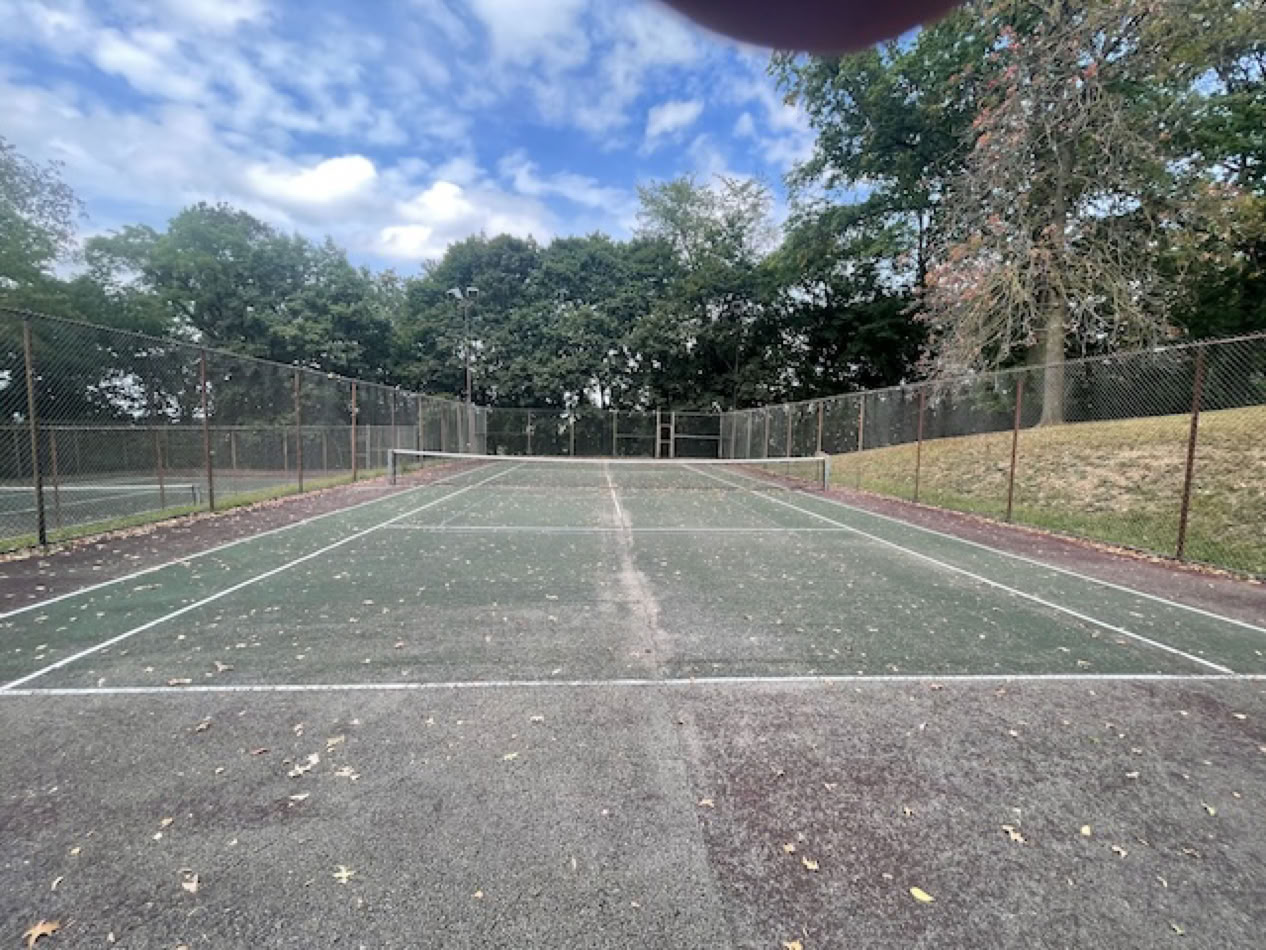 These courts are very nicely set but are in terrible shape. It's a shame because if they were even halfway ok, they'd be fun to play.