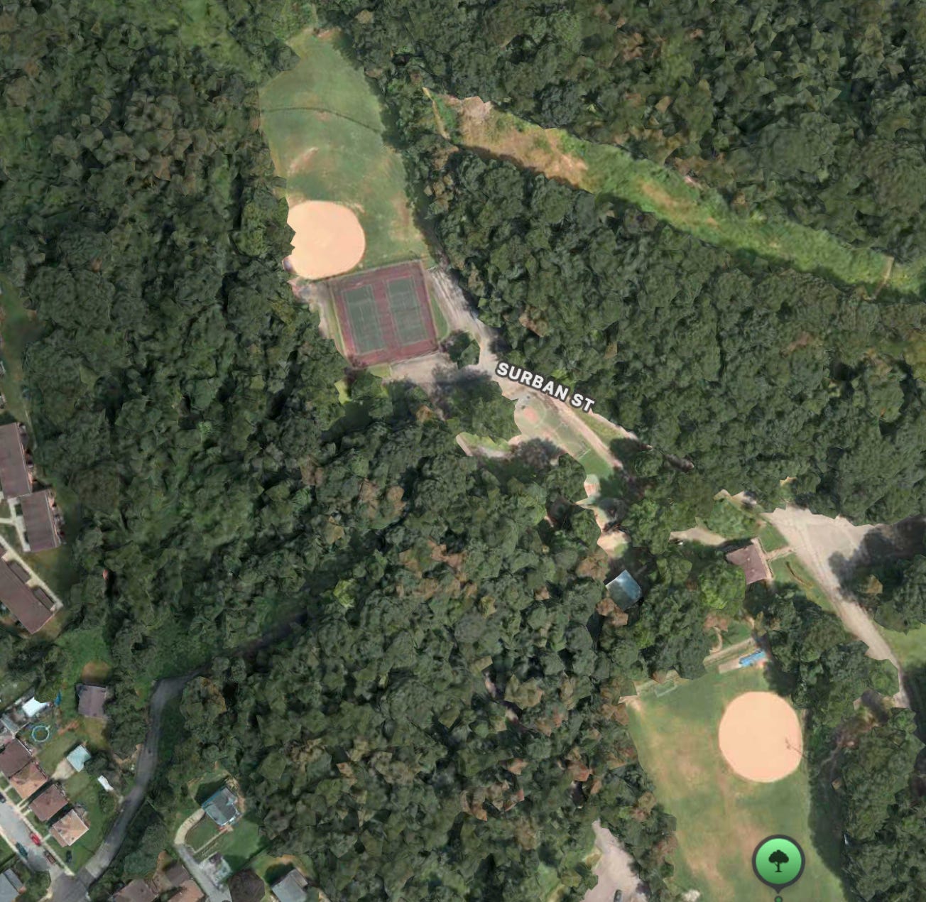 USTA site indicates there are courts here and so does a city planning document but these are really a pair of neglected wrecks with no nets. They may look like a pair of courts from low earth orbit but in reality...